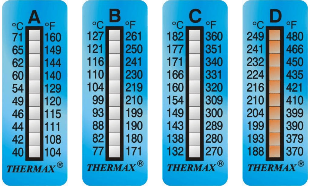 Thermax indicators show a permanent color change of the highest temperature achieved. The chemistry is calibrated to precise temperature points relevant to curing processes, available across ranges that align with common cure requirements.